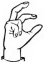 На ћирилици написано СУЗАНА АРСИКИН састоји се из 13 слова [?]. Исписано ћириличном једноручном азбуком за глувонеме: